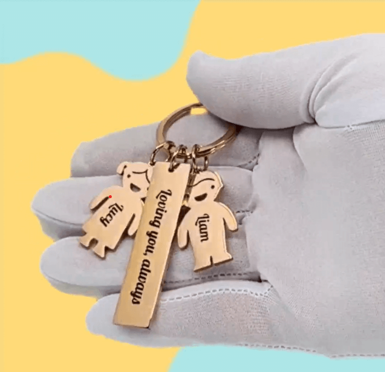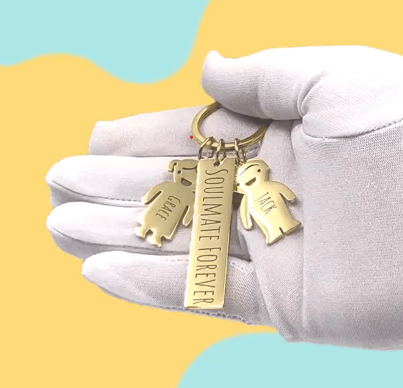 ♥ Custom Text and Font: Personalise the rectangular keyring, boy-shaped charm, and girl-shaped charm with names or short texts. Choose from a variety of fonts to create a truly unique gift.