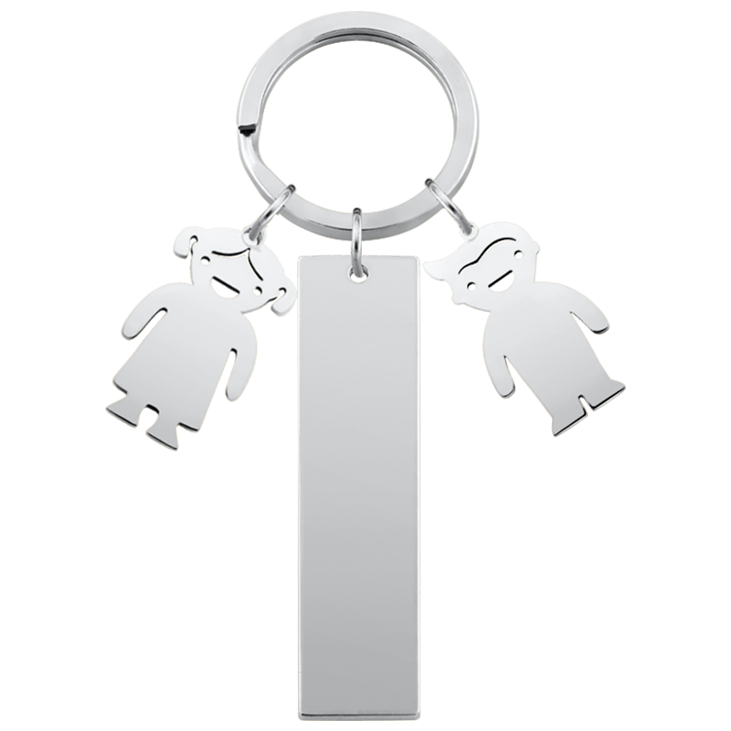 Celebrate your family with our Engraved Rectangle Personalised Keyring with Boy and Girl Charms. This keyring features a custom engraved rectangle and both boy and girl charms, perfect for personalising with names or dates. Ideal for any occasion, this personalised keyring makes a thoughtful gift. Made from stainless steel, it's durable and long-lasting. Personalise yours today and carry your family with you.